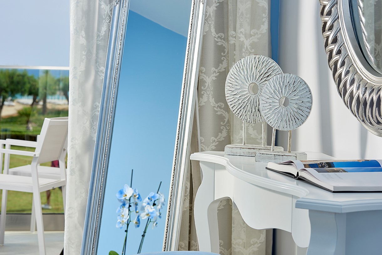 Mythos Junior Suites are furnished to an exceptionally high standard and have a direct, unimpeded view of the sea.
